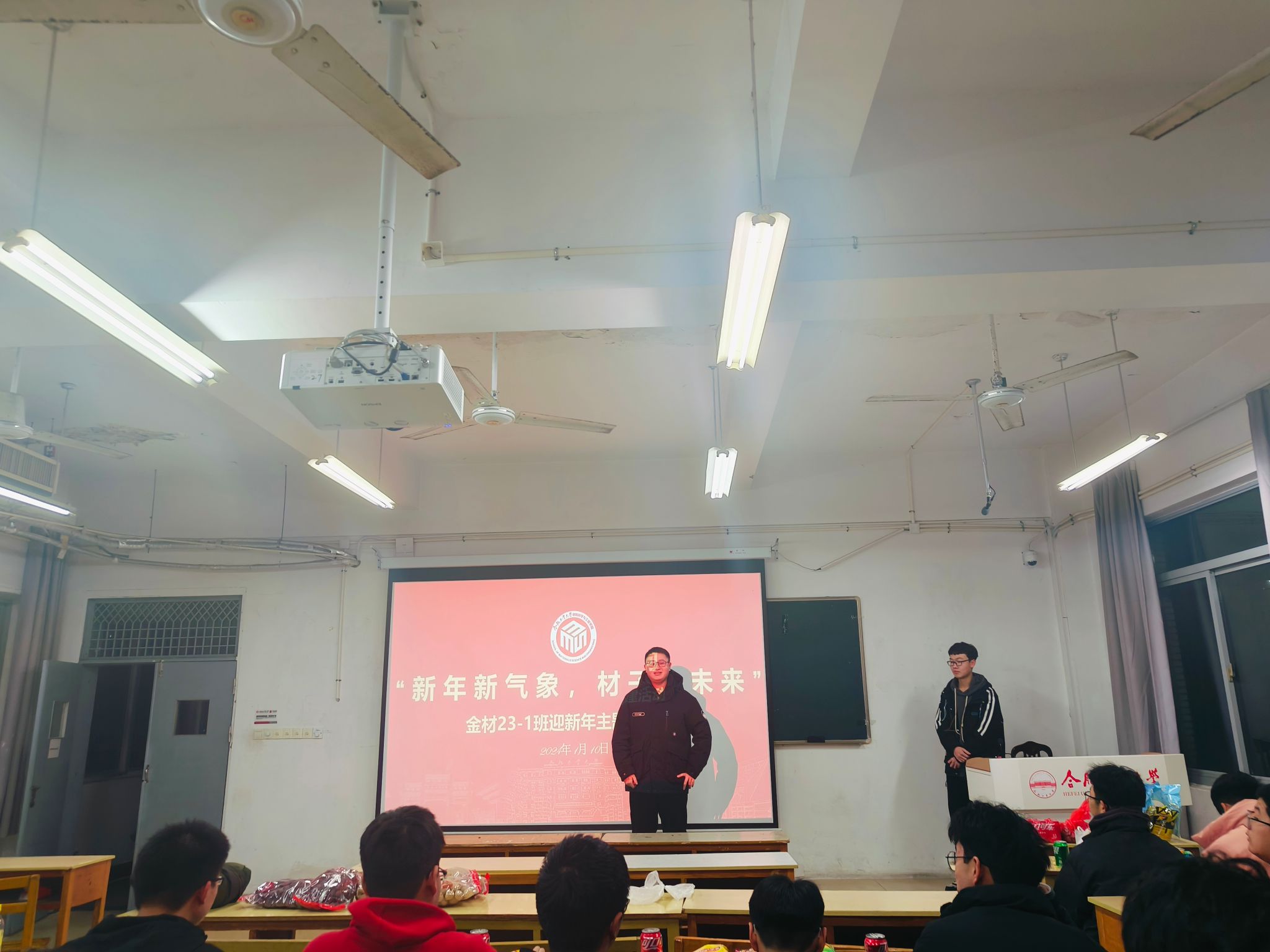 为庆贺新年到来,巩固班级团结,缓解期末压力,1月10日晚,英国365集团官网组织金属材料工程23-1班于翠七教302举办了主题为“新年新气象,材子向未来”迎新年主题团建活动,金属材料工程23-1班40名同学及班主任谢思瑶参与本次活动。