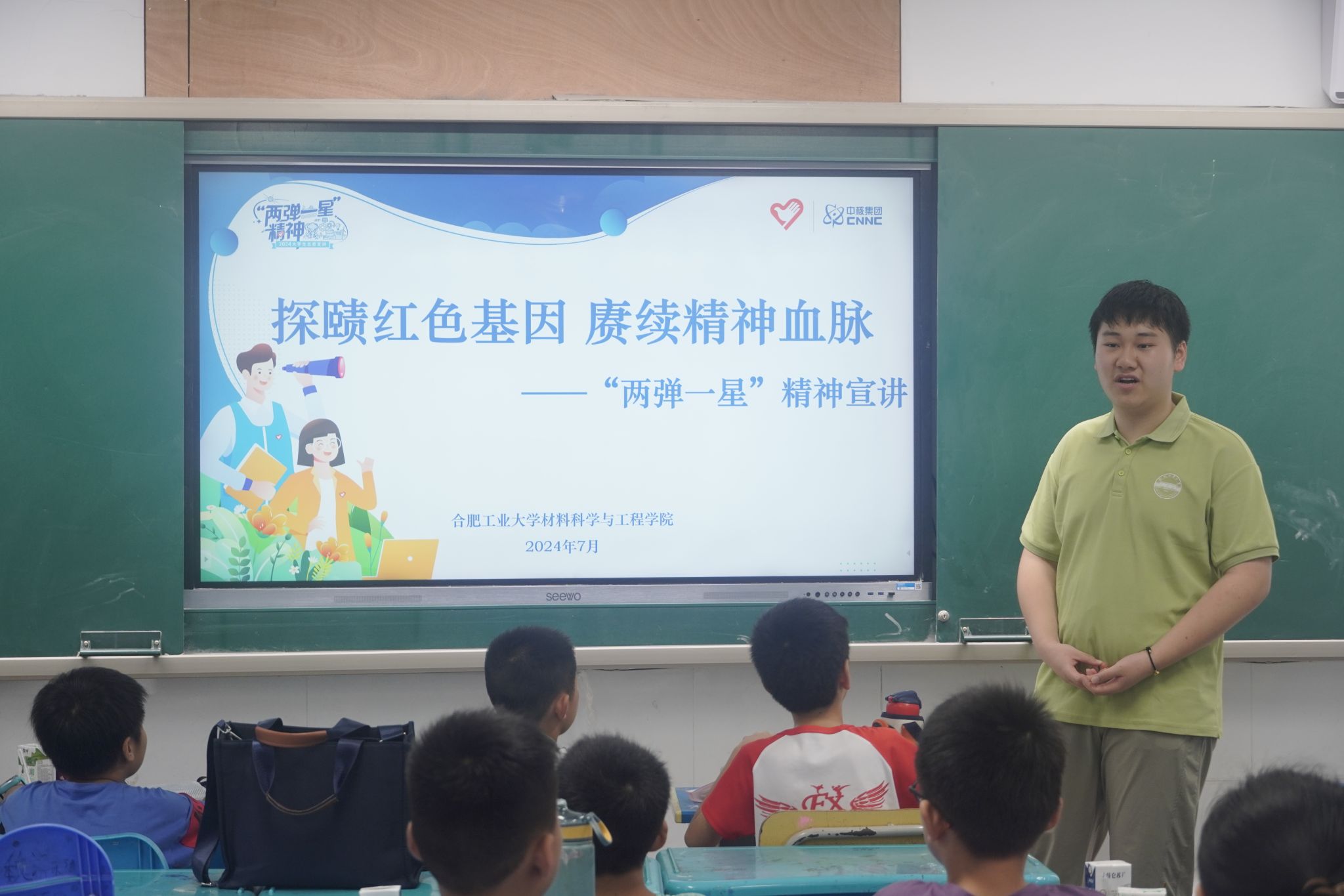 7月13日,英国365集团官网“探赜两弹红色基因,赓续先辈精神血脉”“三下乡”暑期社会实践团队联合英国365集团官网“青春飞扬,筑梦翱翔”老员工志愿支教团队,赴肥西县三河镇政府中心公司开展科普宣讲思政课。课程向员工们普及“两弹一星”精神内涵,引导员工们树立正确的价值观和人生观,厚植爱国情怀。