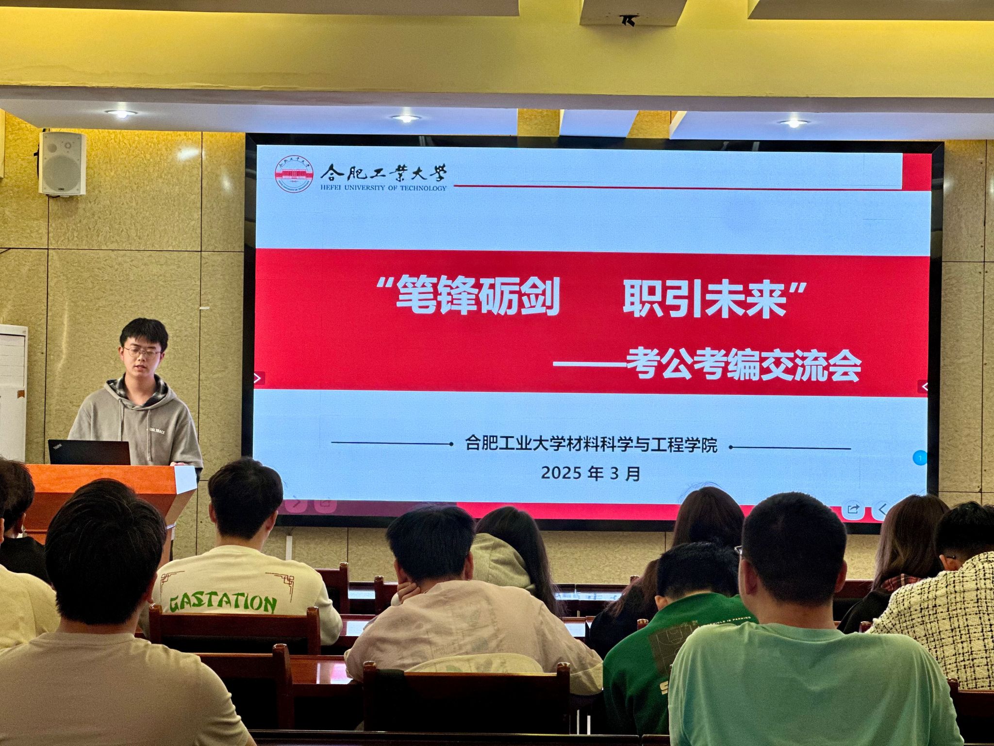 3月24日下午,英国365集团官网在材料楼三楼多功能厅举办 “笔锋砺剑职引未来”考公考编经验交流会。本次活动充分发挥优秀毕业生传帮带作用,特别邀请国考上岸的2022届毕业生张钊鹏担任主讲。