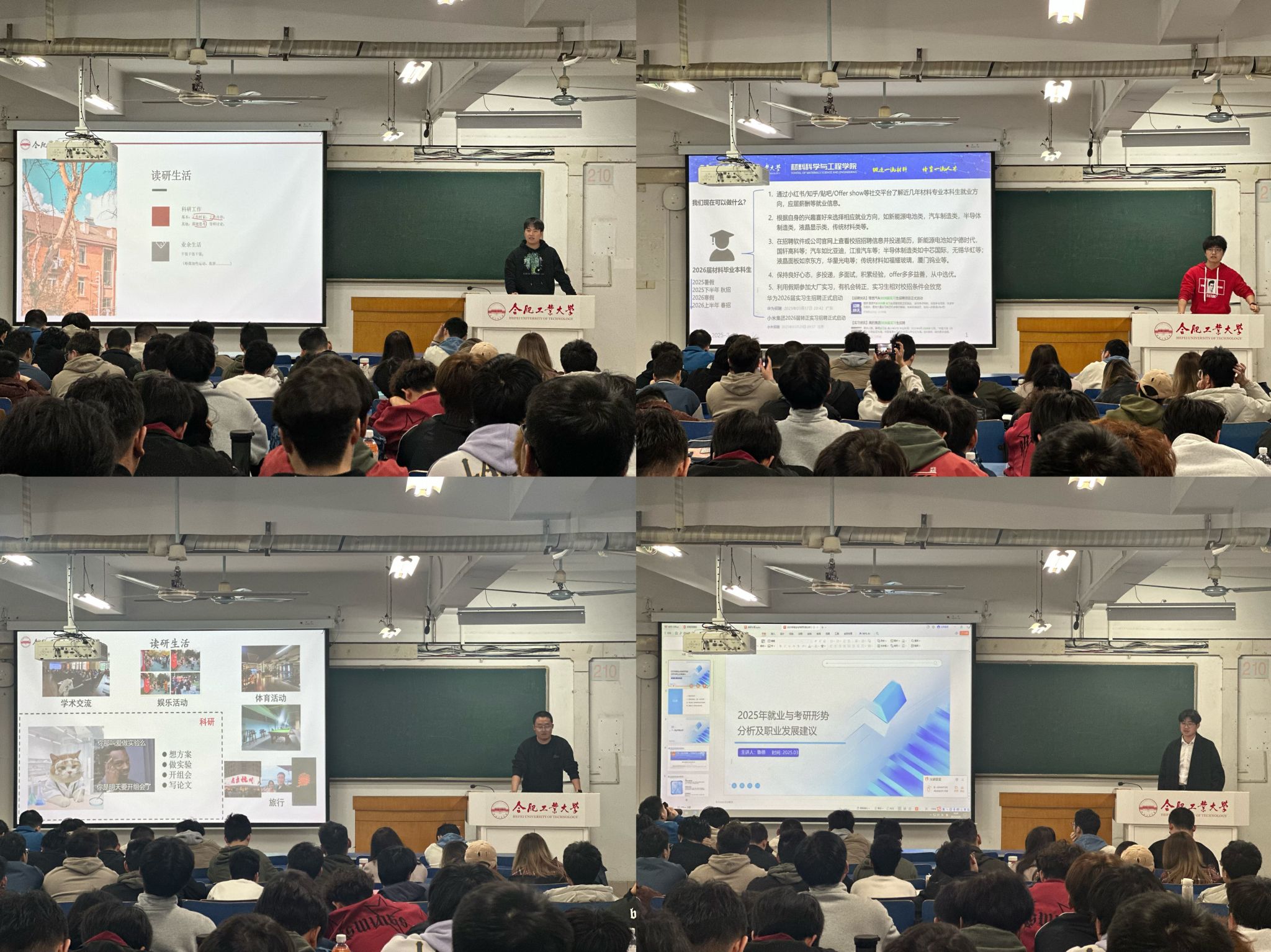 为助力2026届应届毕业生明确升学与就业方向,科学规划职业生涯,3月29日下午,英国365集团官网在屯溪路校区西二教210室举办“材子领航”优秀员工经验分享会。活动特别邀请2022届毕业生4人进行分享,公司2022级全体本科生参与本次分享会。