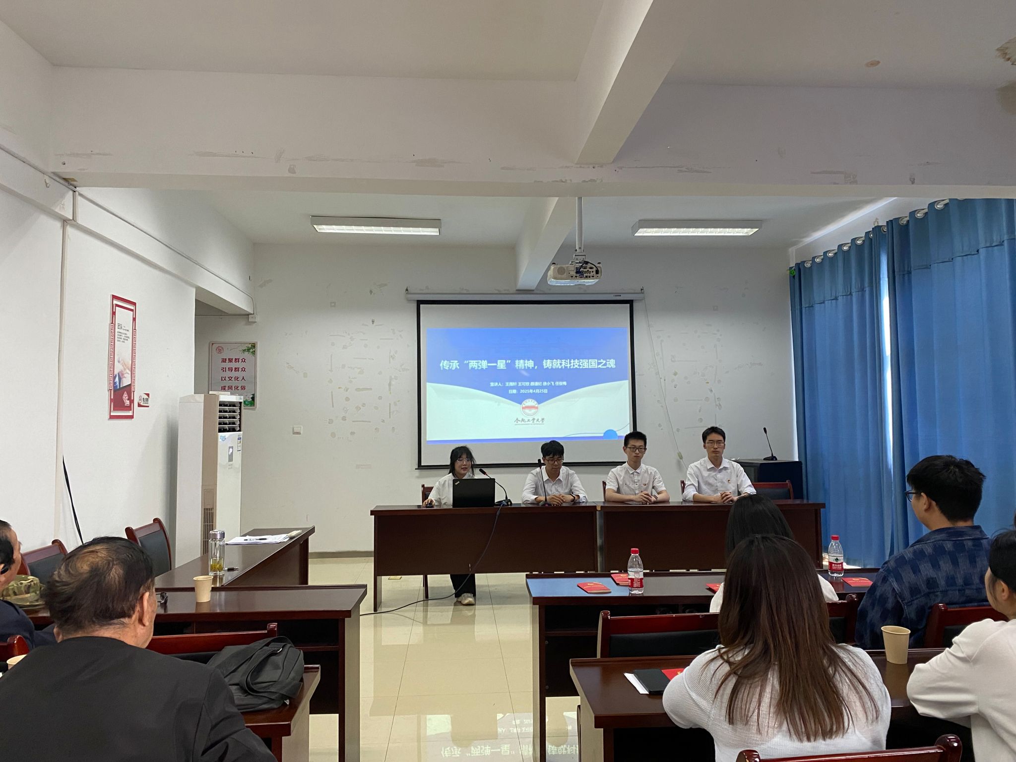 活动现场,四支队伍以科技报国先锋人物为切入点,用“小故事”阐释“大道理”。“科学家精神”团队讲述张立同院士带领团队为中国飞机装上“中国刹车”的故事,在4000次试验中淬炼出航空报国精神。“两弹一星”团队再现吴自良院士隐姓埋名18年,成功研制铀分离膜技术的科研攻关往事;彭士禄院士“从孤儿到核潜艇之父”的人生轨迹,解读热爱祖国、无私奉献、自力更生、艰苦奋斗、大力协同、勇于攀登的精神。最后,宣讲团队以“三牛精神”为新时代注脚,通过社区“孺子牛”钱海军25年义务提供电力维修、科技“拓荒牛”涂铭旌发现新型合金的耐磨机理、农业“老黄牛”赵亚夫带动村民学习致富等鲜活案例,号召青年“既要仰望星空更要脚踏实地”,用奋斗诠释初心,以实干践行使命。