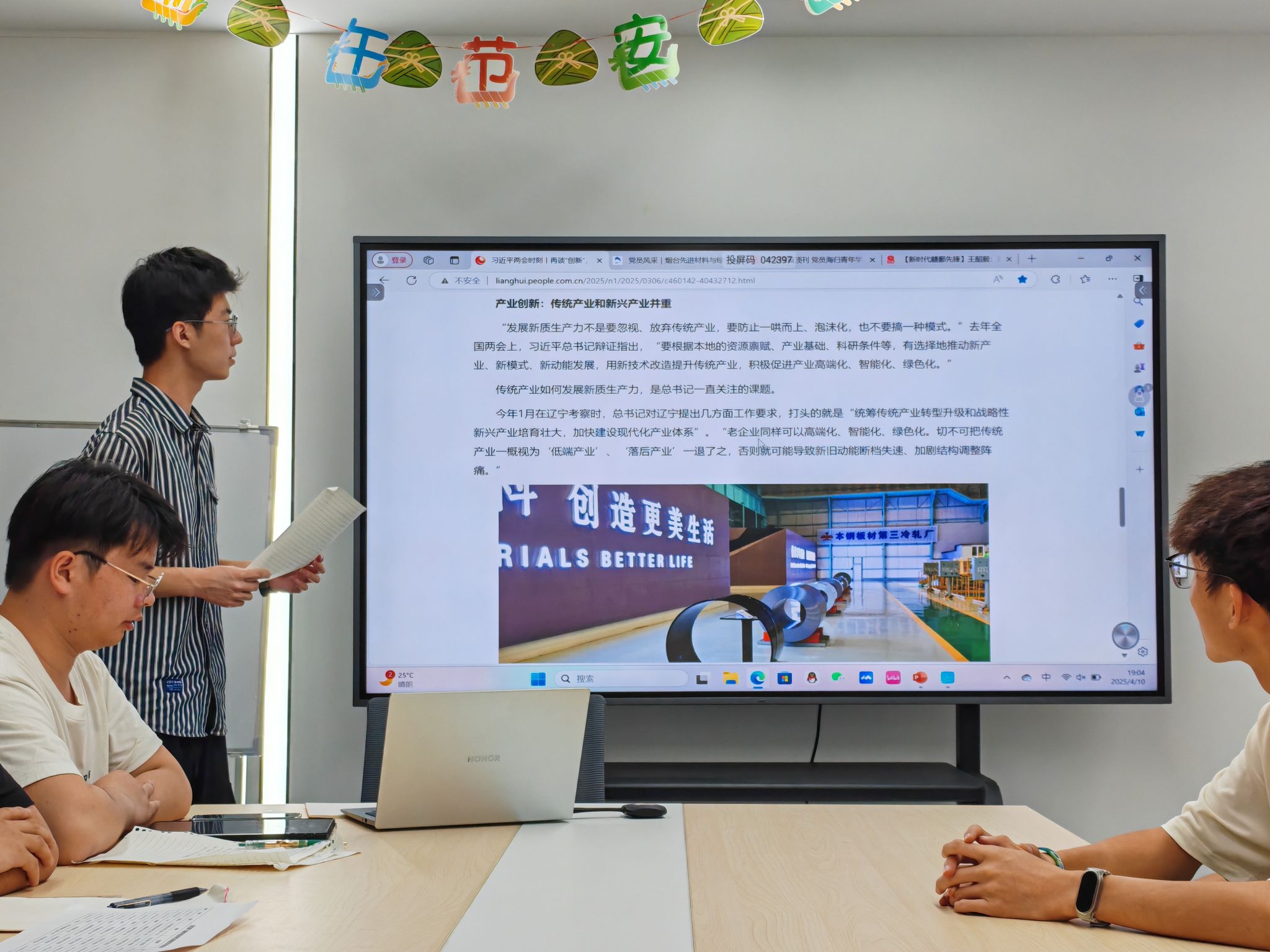 活动伊始,学员们共同学习2025年两会中关于新质生产力和科技创新方面的要求,深刻认识到科技创新对发展新质生产力的重要性。随后,由活动主持人带领全体学员学习了材料专业中深耕科技创新、产业升级的典型人物事迹。如崇义县章源钨业的王韶毅,扎根一线十余年,带领团队突破技术瓶颈,实现多项技术创新,展现出直面困难、勇于创新的精神;上海交通大学低维材料团队的海归党员们,放弃海外优越条件回国,在国际设备禁运困境下,坚持探索低维材料前沿研究,半年内在国际顶尖学术期刊发表四篇顶刊论文,彰显了爱国奉献、坚韧不拔的品质;烟台先进材料与绿色制造山东省实验室的姜金龙,放弃高校工作,投身实验室建设,带领团队解决行业难题,体现了科技报国的担当。