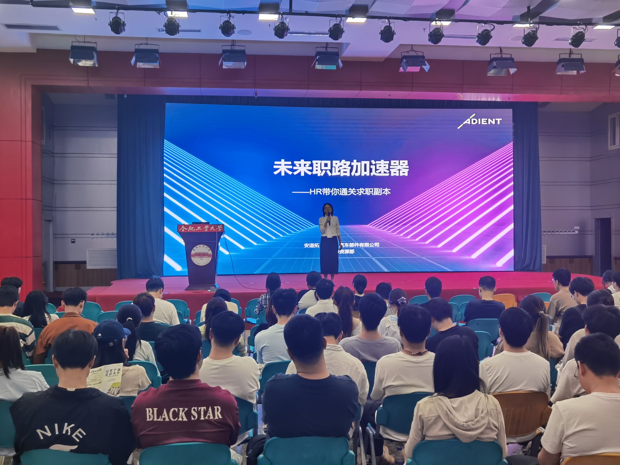 特邀安道拓(重庆)汽车部件有限公司人力资源部人才发展团队优秀讲师蹇睿茜担任主讲,蹇睿茜讲师结合当下高校毕业生就业市场现状,从职业选择、简历制作、面试技巧等多个维度展开详细讲解,为现场全体研究生在以后的求职面试道路上指明了方向。
