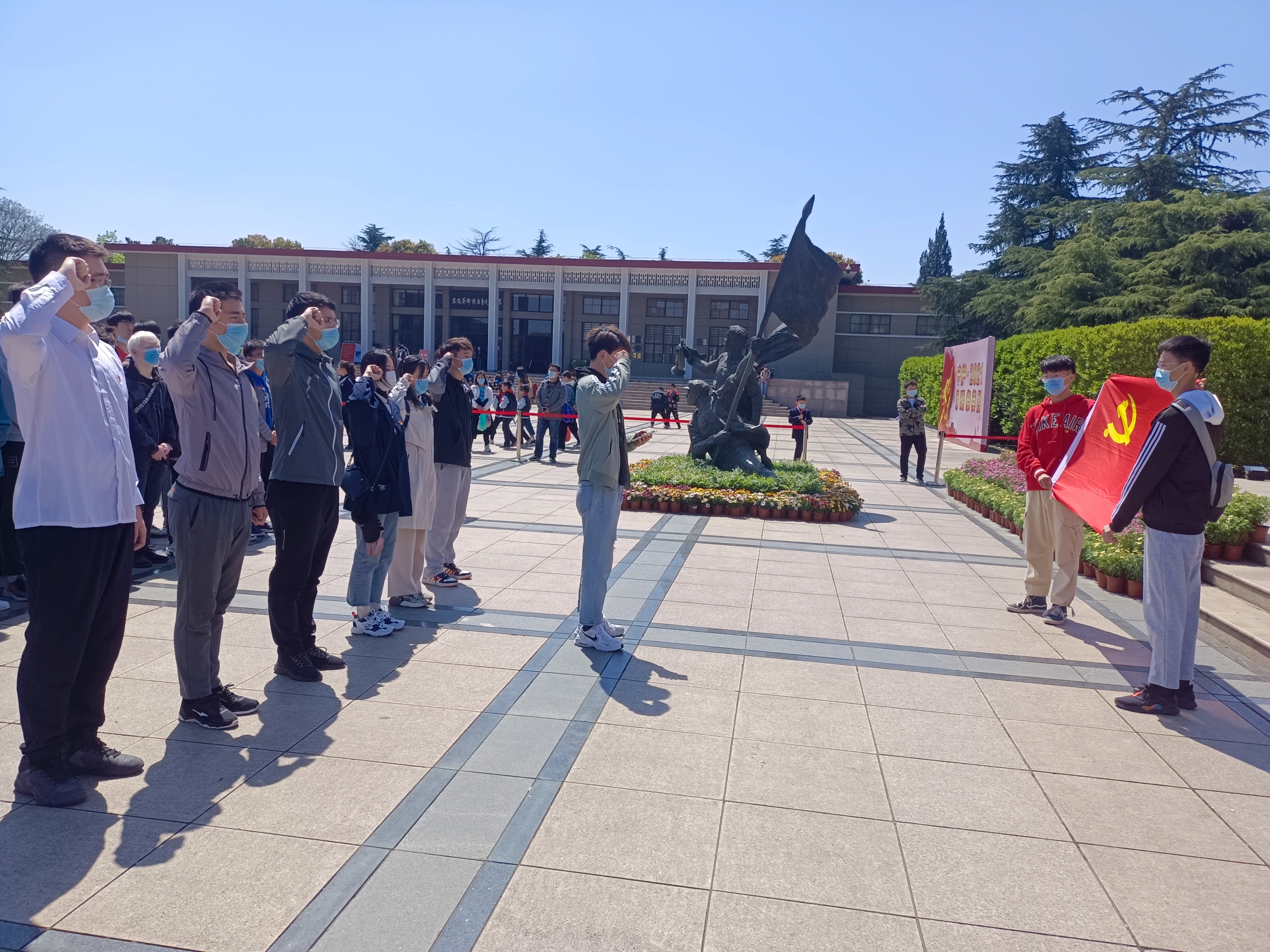 全体同学怀着崇敬肃穆的心情,拾阶而上,来到“江淮英烈永垂不朽”纪念碑前,全体同学肃穆默哀沉思,员工代表向纪念碑敬献鲜花,全体同学分别面向团旗和党旗,重温入团和入党誓词,响亮的宣誓声阵阵回荡,强烈震撼着在场的每一位同学,表达了大家以实际行动继承烈士精神、勇担使命的信心和决心。随后,全体同学参观了安徽革命烈士事迹陈列馆。馆内一件件文物、一幅幅图片展示了安徽籍烈士在革命进程中的丰功伟绩和革命精神,再现了中国共产党人为民族独立、国家富强、人民幸福,用生命和鲜血演绎的绚丽悲壮的人生。同学们认真聆听革命先烈的事迹,被先辈们为革命事业和人民幸福不屈不挠、英勇献身的崇高精神深深感动。