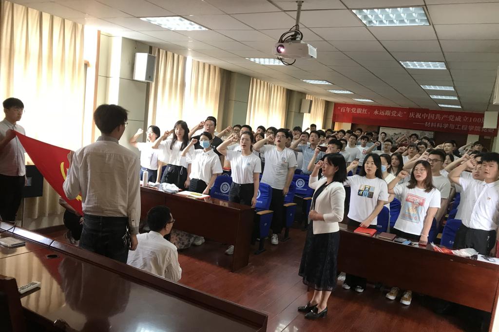 公司党委在601会议室举行入党宣誓仪式,在党委书记吕珺的领誓下,公司全体新入党党员举起右手,在党旗下庄严宣誓,并集体齐唱没有共产党就没有新中国。