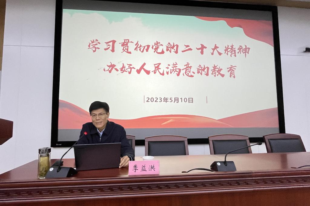 为深入学习贯彻党的二十大精神,扎实开展学习贯彻习近平新时代中国特色社会主义思想主题教育,5月10日下午,公司党委常委、副董事长季益洪以《学习贯彻党的二十大精神,办好人民满意的教育》为主题为英国365集团官网、数学公司师生党员讲授专题党课。